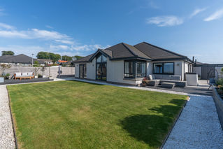 Forming part of an exclusive development in the idyllic village of Dairsie, this four-bedroom bungalow offers a rare opportunity, showcasing high-spec finishes, exceptional attention to detail, and a bright, spacious layout designed for modern living. With hardwood flooring and a chic interior design, the entrance vestibule creates a striking first impression, setting the tone for the stylish accommodation beyond. From here, you enter a carpeted hallway that leads to a generously proportioned, south-west-facing living room. Bathed in natural light and offering captivating countryside views, this inviting space seamlessly blends indoor and outdoor living with French doors opening directly onto the garden. Plush carpeting, a statement accent wall, and a crisp, modern colour palette enhance the ambience, making it the perfect setting for everyday living, relaxation, and entertaining. Returning to the hallway, the contemporary kitchen is a true highlight. Bright and airy, with French doors leading to the garden, the space features an appealing décor including Amtico flooring and a comfortable seating area. A central breakfast bar anchors the room, surrounded by sleek, under-base-lit cabinetry in natural tones paired with high-gloss white finishes and smooth stone countertops. High-spec integrated appliances include a five-ring gas hob, oven, and eye-level grill, all add to the kitchen’s premium feel and there is a laundry room for additional storage. The principal double bedroom is a luxurious retreat, with an elegant interior scheme, a south-west-facing aspect, and built-in mirrored wardrobes. It is further enhanced by a spa-like en-suite shower room, showcasing a WC, wall-hung vanity with washbasin, and a chrome towel radiator, all set against high-quality tiling. Three additional double bedrooms offer equally impressive accommodation, each with built-in mirrored wardrobes and two sharing an en-suite shower room with high-end finishes that echo the principal suite’s refined style. Completing the layout is a serene and skylit family bathroom, featuring a bath, shower enclosure, WC, and washbasin set into a wall-hung vanity unit. Framed by premium porcelain tiling, this spa-inspired space adds the perfect final touch to this outstanding home.