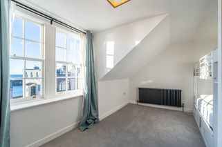 Beautifully renovated by the current owners with careful consideration given to its heritage, this three-floor Category C-listed townhouse steps from St Monan’s harbour is characterised by historic charm and thoughtful high quality modern finishes. Elegant parquet flooring and a calm colour palette welcome you into the ground floor entrance hallway, setting the scene for the impressive interiors. Here alongside useful shoe and coat storage, there is a bespoke and open utility area complete with built-in cupboards and a Belfast sink. You then move through to a stylish shower room finished in soothing matte black, grey, and white. Complete with a washbasin built into vanity and WC, it is a useful addition to the ground floor. Returning to the hallway, the principal double bedroom is flooded with natural light thanks to a south-west-facing aspect and triple sash and case windows. Decorated with plush carpeting and neutral wall finishes it is light and airy yet comfortable and inviting. Ascending the carpeted staircase from the hallway, the first floor hosts a spectacular south-west-facing open plan kitchen and living room with views across the harbour. Tastefully combining original features with the best in modern design, an exposed stone wall and sash and case windows sit alongside oak-engineered flooring, a custom-made dining table with built-in seating, and a contemporary kitchen. L-shaped in layout wall and floor cabinetry in a soft green is complemented by smooth black worktops and a colourful geometric tiled splashback. High-spec integrated appliances include an extractor hood, hob, eye-level grill, and oven. A log-burning stove and cast-iron radiators ensure the room despite its generous proportions remains warm and comfortable. There is a WC on this floor. The second floor is home to two sizeable double bedrooms, one of which spans the length of the residence and boasts a tranquil south-west-facing view of the harbour and Firth of Forth. A luxurious family bathroom finishes the interior layout featuring a bath with a wall-mounted shower, washbasin built into vanity, WC, and towel radiator.