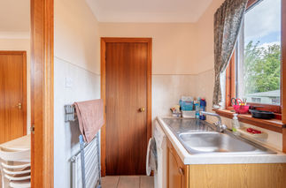 Set within generous front and rear gardens and benefiting from off-street parking, this bright and spacious three-bedroom bungalow offers the ideal opportunity for those looking to downsize in comfort or for growing families seeking a peaceful yet well-connected location in Cupar. A gravel driveway winds through an appealing garden, leading to the front door and into a welcoming entrance vestibule and carpeted hallway equipped with storage. To the right and entered through elegant French doors, a generously sized living room enjoys an attractive dual-aspect outlook across the front gardens, allowing for plentiful natural light. Tastefully decorated with plush carpeting, it radiates warmth and comfort, perfect for relaxing or entertaining. Flowing seamlessly from the living room is the adjoining dining room, continuing the same décor and offering flexibility as a formal dining space or cosy family room. Further along the hallway, the kitchen enjoys a rear garden outlook and accommodates casual dining for two. Fitted with classic shaker-style wall and floor units, a white tiled splashback, and complementary worktops, it offers ample space for freestanding appliances. An adjacent utility room with garden access provides additional storage. The principal double bedroom, quietly positioned to the rear of the home, is a peaceful retreat complete with built-in wardrobes and an en-suite WC. Two further light-filled double bedrooms, one also with built-in storage, offer flexible accommodation for family, guests, or home working. Completing the layout is a traditionally styled family bathroom featuring a bath, WC, shower enclosure, washbasin, and handrails.