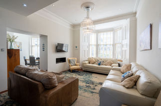 Minutes from Elie Beach, this rarely available three-bedroom semi-detached C-listed Victorian villa with a two-bedroom garden cottage is presented in immaculate condition, characterised by its elegant interiors, high-spec finishes, and exceptional attention to detail. Flowing seamlessly from the hallway, this outstanding home opens into an elegant west-facing dining room before revealing a stunning open-plan sitting area and kitchen. Spanning the full width of the property, it enjoys an enviable dual aspect, east and west, with French doors leading directly from the kitchen to the garden. Overlooking the street-facing enclosed garden, the west-facing sitting area is framed by bay windows with shutters and features a soft neutral décor, a wall-mounted fireplace, and a sense of understated sophistication. The sleek, modern kitchen separated from the sitting area by a one-wall island/breakfast bar, boasts cream cabinetry, polished black worktops and splashback, and high-spec integrated appliances including a stainless-steel range cooker, American-style fridge/freezer, extractor hood, and wine fridge. The kitchen includes an Insinkerator instant hot water tap. Thoughtfully designed with space for dining, it is at the heart of the home. Also on the ground floor is a spacious, light-filled double bedroom with a luxurious en-suite rainfall shower room featuring LED lighting, a hidden cistern WC, and a washbasin built into vanity. Upstairs, two generously proportioned and tastefully decorated double bedrooms enjoy east and west-facing aspects, each complemented by its own luxurious ensuite. One features an indulgent, spa-like design with Jack and Jill washbasins, a deep bathtub, walk-in shower, and WC, while the other boasts a well-appointed shower room, providing both style and convenience. Situated within the garden, the impressive Garden Cottage offers excellent flexibility, ideal for older children, extended family, or as an investment opportunity. It features an open-plan reception area and L-shaped kitchen with gloss cream units, wood-effect worktops, and integrated appliances including a hob, oven, and extractor hood. The kitchen also includes an Insinkerator instant hot water tap. Two comfortable double bedrooms, including one with west-facing French doors to the garden and an en-suite, are complemented by a family bathroom.
